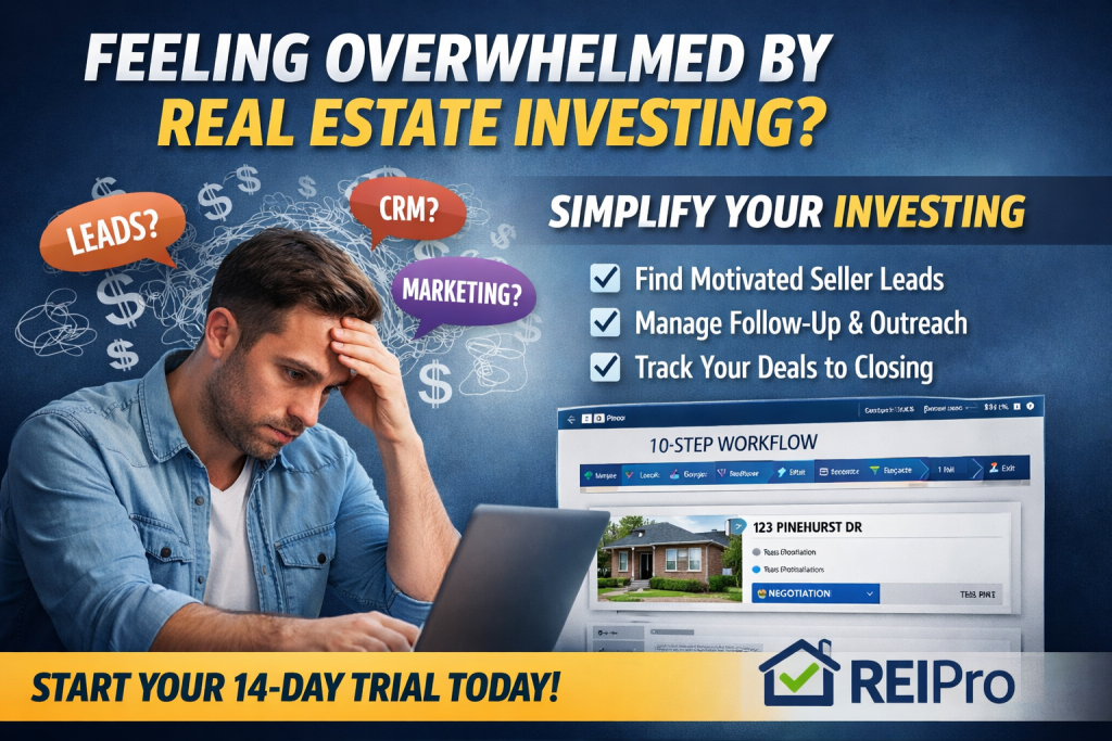 If real estate investing feels overwhelming right now, that’s normal. There’s so much noise: Before you know it, you’re paying for multiple subscriptions and still not closing deals. That’s why newer investors do better when they simplify early. REIPro gives you one system to run your early business: That means less confusion, less wasted time, […]